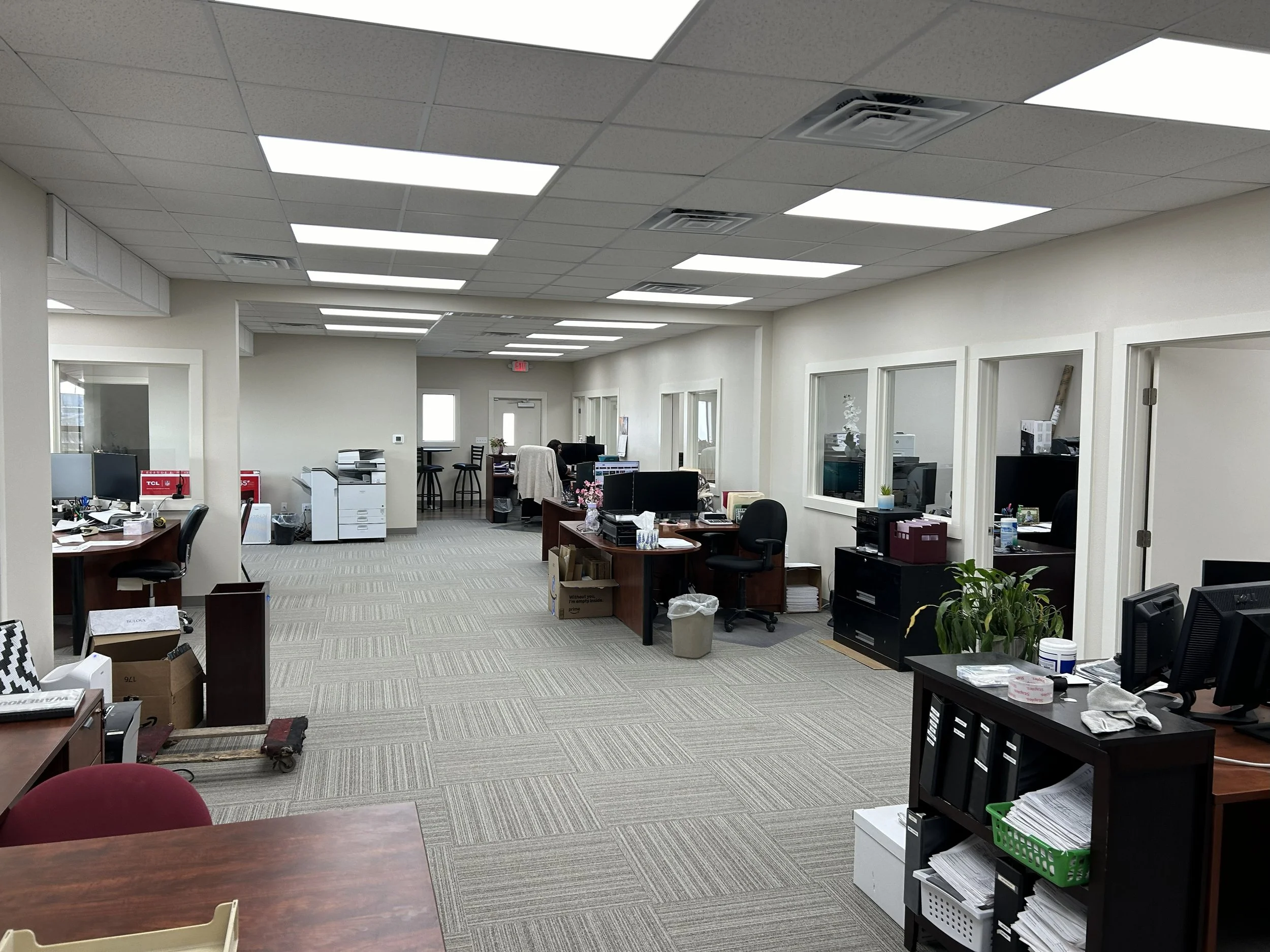 Job Description: Office space buildout with exterior impact windows and a steel building canopy